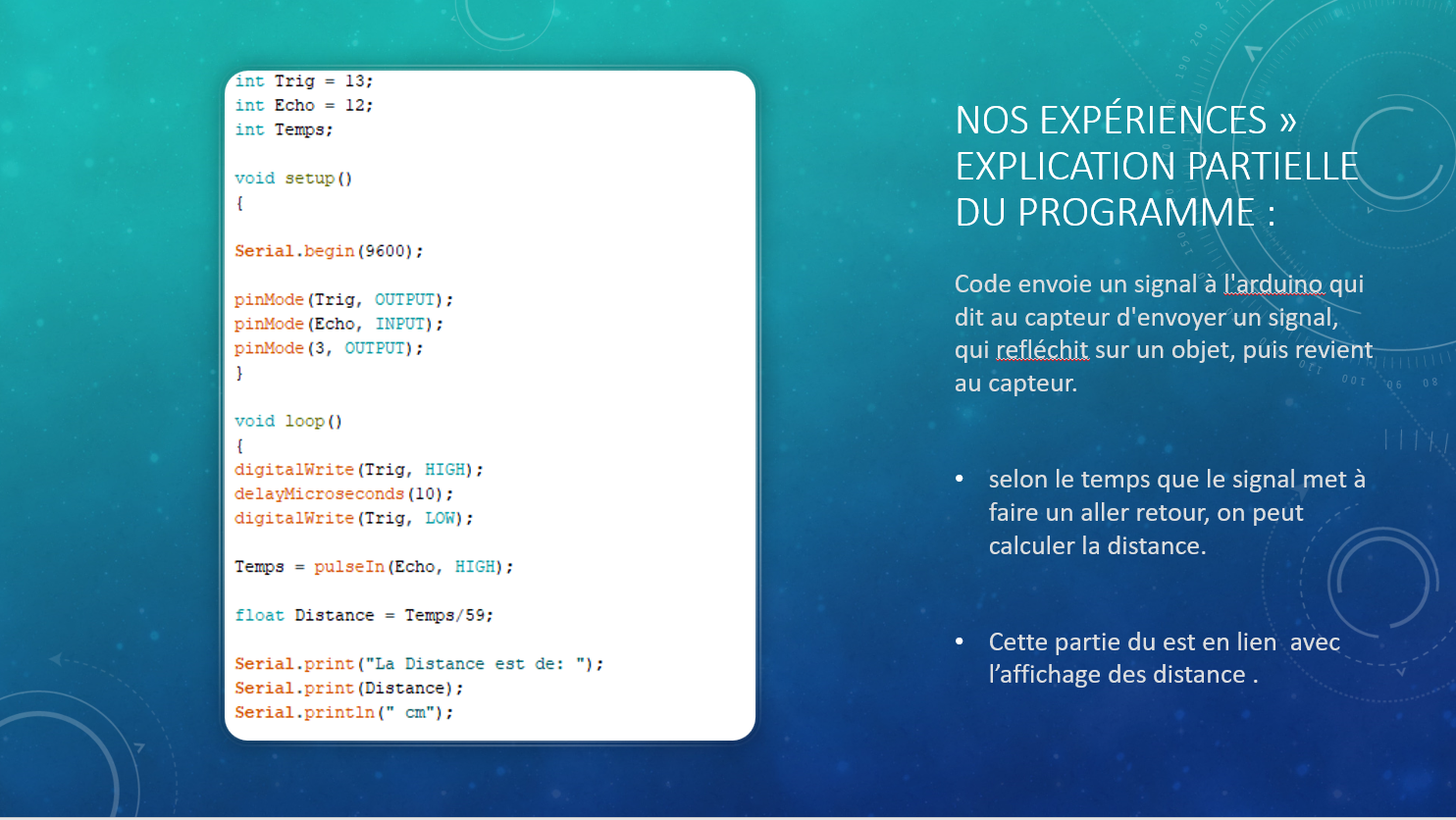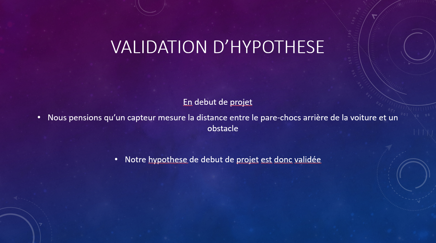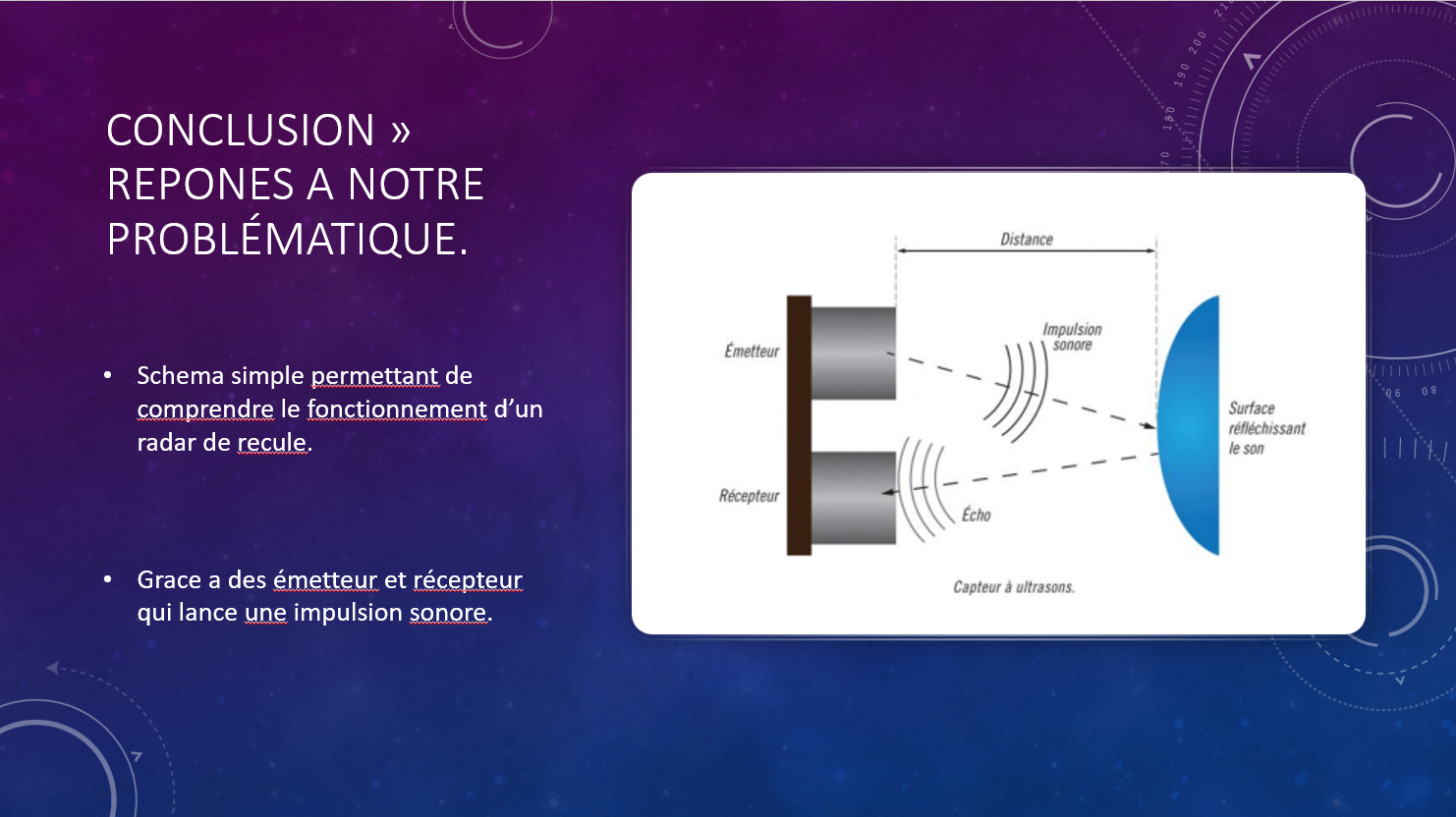 Le projet a validé l’hypothèse initiale : un capteur de recul utilise des émetteurs et récepteurs pour envoyer une impulsion sonore et calculer la distance en fonction du temps de retour du signal.